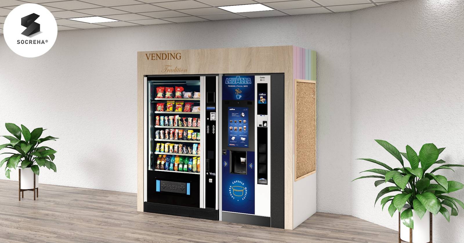 Généralement dans les environnements hospitaliers, nous accompagnons les distributeurs de boissons chaudes de distributeurs proposant des confiseries, boissons fraiches et produits frais.